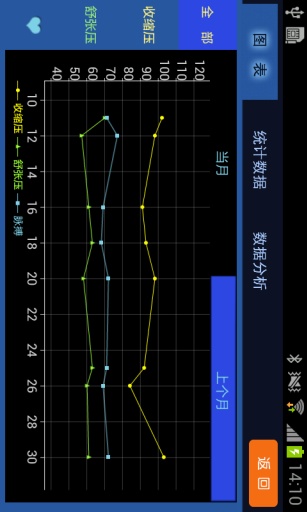 2、数据汇总功能,本地可以轻松查看到历史血压数据。并以列表及图表形式展示出来。