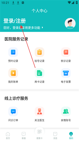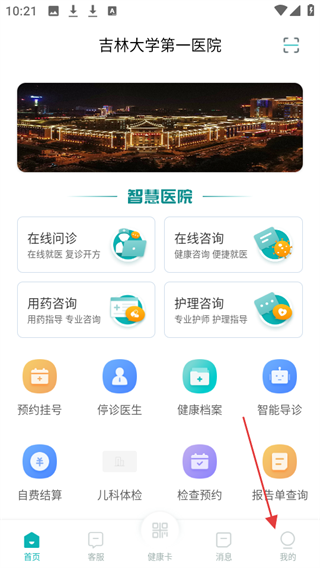 1、打开吉大一院智慧医院APP,点击底部导航栏中的我的选项。