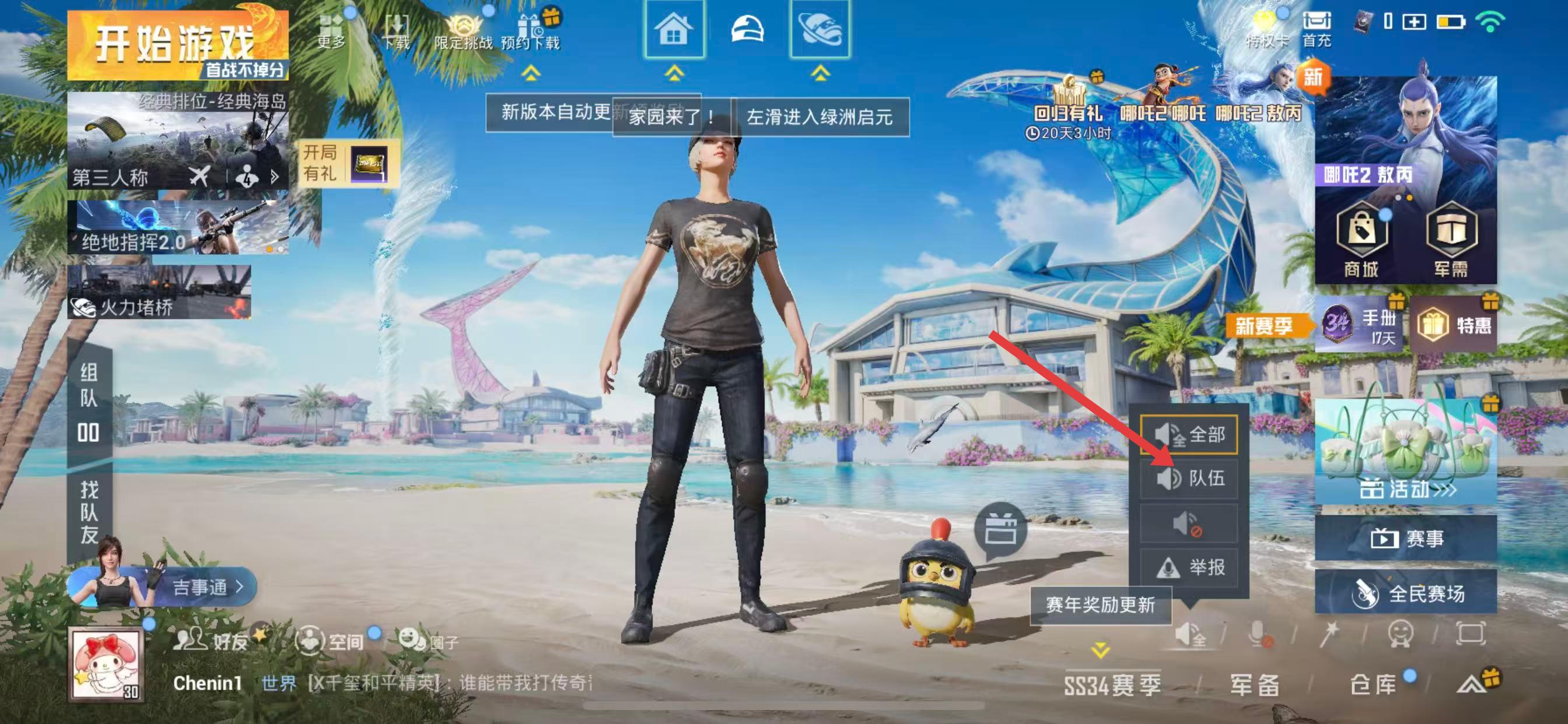 1、进入游戏主界面,在界面右下方找到喇叭形状的语音按钮。