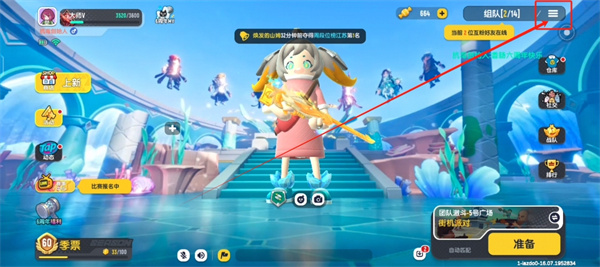 1、首先我们需要先登录游戏,在游戏主页界面中点击右上角的【三】按钮,然后就会弹出来相关的功能;
