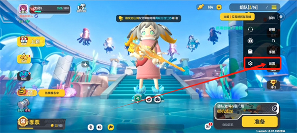 2、在弹出的窗口中选中【设置】点击进入到设置界面,兑换码的入口就在设置界面;