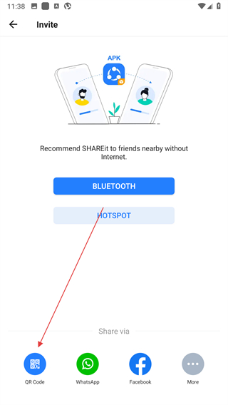 3、在邀请页面的底部区域,找到QR Code选项并点击,即可弹出弹窗。