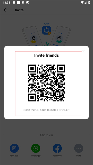 4、让好友扫描该弹窗内的二维码,即可引导对方安装茄子快传应用完成邀请。