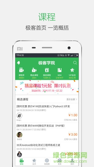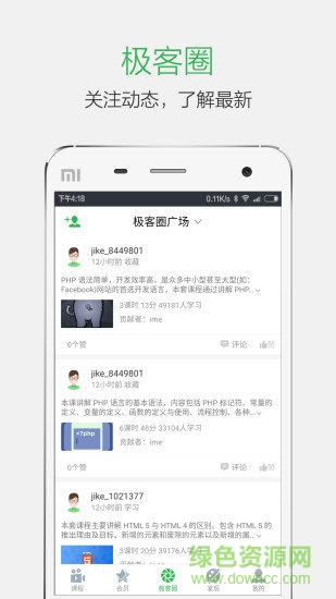 极客学院app是一款很不错的安卓开发学习交流平台。软件通过最新的,高质量的,专业实战的在线开发课程打破传统的编程学习模式,以新一代的编程学习模式帮助开发者更快更好的学习Android开发,帮助开发者通过技术实现自己的理想。软件功能强大,汇集了几十名国内顶尖的有多年项目和实战经验的Android开发授课大师,精心制作了上千个高质量视频教程,涵盖了Android开发学习的基础入门、中级进阶,高级提升、项目实战开发等专业的android开发课程。