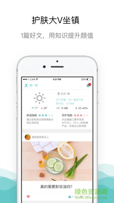 你今天真漂亮app安卓版是一款专业的护肤美容软件,专业的美容专家在线为你解答各类护肤问题,同时还有超多护肤小大人为你分享他们的小技巧,帮助你一起打造一个健康漂亮的你,喜欢就来绿色资源网下载吧!