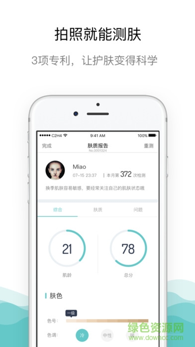 2.智能测肤:一键拍照,轻松定制自己的护肤、美肤方案。