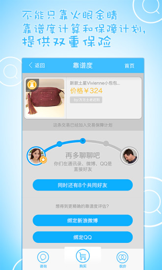-提供保障。陌生人的交易是否可信?有靠谱度和保障给你参考。