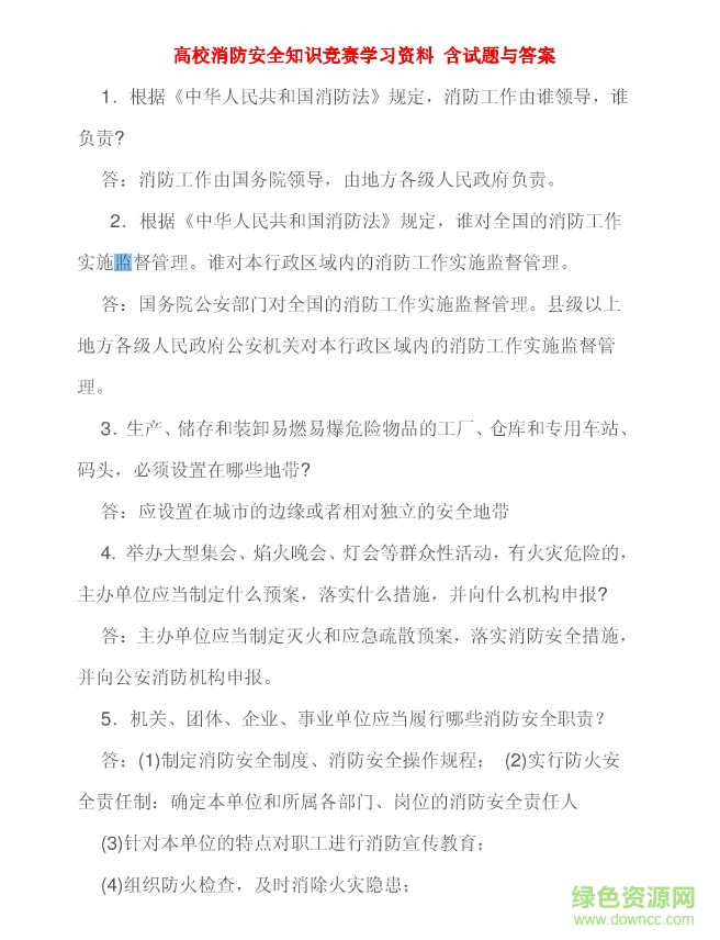 2018消防安全知识竞赛题库及答案参考是小编根据竞赛整理的一套练习题库,附有答案,方便用户能够更好的掌握相关的信息,参加竞赛更加具有信心,同时希望每一位用户能够掌握更多的消防安全知识,保护日常安全,需要的用户快来绿色资源网下载吧!