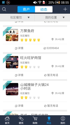 2、在这里,你可以体验吃喝玩乐、衣食住行便民服务,如:查询周边的餐饮、休闲娱乐、社区酒店、旅游出行等社区服务;也可查询车位、实现远程门禁控制,让进出停车场方便快捷。