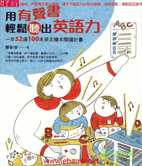 用有声书轻松听出英语力pdf是廖彩杏编写的儿童英语教学图书,从听力上面帮助孩子更好的掌握英语力,从小培养孩子的英语学习方式,需要提高听力的朋友来绿色资源网免费阅读吧!
