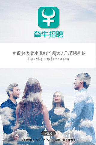 牵牛招聘是一款国内最大的移动招聘平台,是中国最大最垂直的“圈内人”招聘平台。牵牛招聘是以企业招聘悬赏众包和个人求职酬众为两大功能特色的双向众包模式。目前服务于广告\传媒、游戏、IT\互联网行业的企业为主。牵牛招聘它让企业发布悬赏任务,借助猎头、朋友、圈内推荐获得可靠的人才。找工作就用牵牛招聘吧!