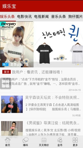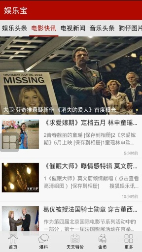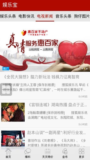 娱乐宝是一款,整合凤凰网、网易、搜狐、中新网等多家专业媒体的信息源,可以快速浏览各家主流媒体的头条新闻、明星动态、影视资讯等娱乐资讯的资讯订阅类软件。里面内容齐全,赶快下载吧!!!