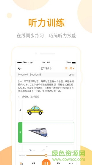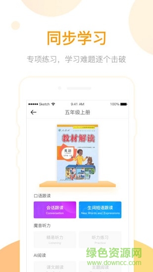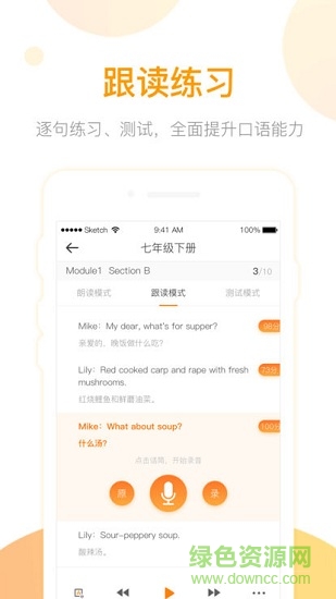 本应用同步课本,从基础练习开始,逐步掌握英语学习中听、说、读的技巧,不再让学生学哑巴英语,是学生同步学习的好帮手。让学生拥有口袋课本,任何场合下都可以学习课本内容,应用中主要学习内容:口语跟读、听力练习、课文听读。