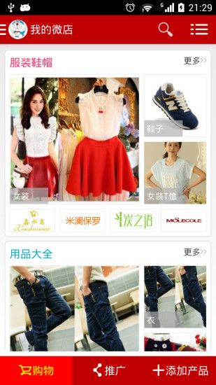 注册微店、搜索、购物、分享推广、商品上架、产品发布等功能;