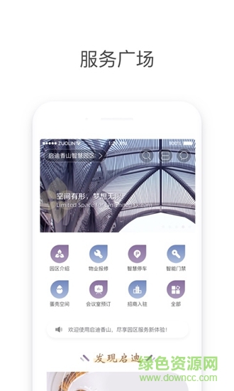 启迪香山app是一款功能强大的园区管理软件,提供详细的园区信息介绍,物业报修、智慧停车、智能门禁、会议预订等均可在线查看办理,园区活动、周边信息及时推送,欢迎来绿色资源网下载!