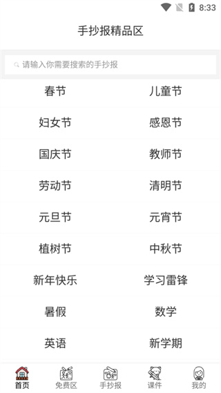 1.节日类春节手抄报、儿童节手抄报、妇女节手抄报、感恩节手抄报、教师节手抄报、劳动节手抄报、清明节手抄报、元旦节手抄报、元宵节手抄报、学习雷锋、植树节手抄报、中秋节手抄报、