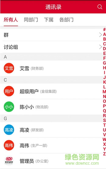 6.通讯录:可以查看系统的公司通讯录,并且可以查看通讯录中任一人员的详细信息,并且可以自动识别电话号码进行打电话、发送手机短信功能。