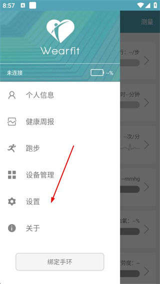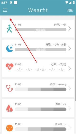 1、打开Wearfit APP,点击左上角三条横线的菜单图标。