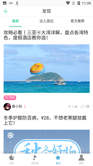 2、提供丰富的游记和旅游视频,为用户推荐热门景点和特色美食。