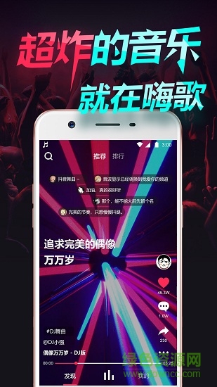 嗨歌超火、超炸、超社会新潮流音乐分享平台。