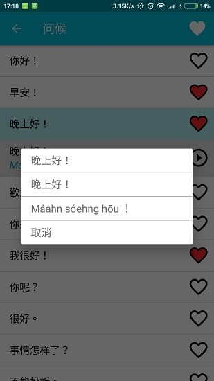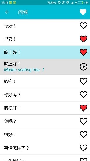 2、所有提供的广州话都有语音,你可以清晰的知道广州话的读法。
