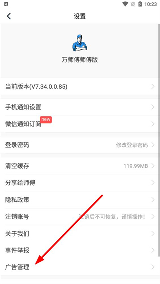 3、在设置页面中,找到并点击广告管理选项,进入广告相关的配置界面。