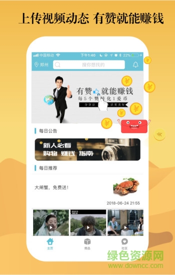 十三座城app是一款赚钱的商城,用户在软件上传视频,获得赞就能赚钱,在app评论、点赞等活跃就能获得爱币,爱币可以提现也可在平台购物时抵扣现金哦,一物多用!