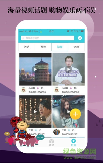 5、在十三座城app社区上传视频,话题,写评论,点赞就能赚爱币!