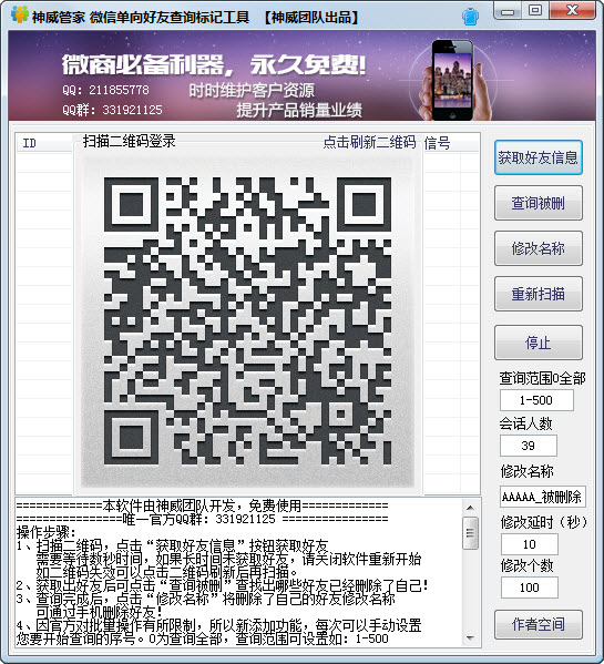神威管家是一款可以知道你的微信好友是否把你删除了的查询微信被删好友工具。功能强大,还可以单向查询微信好友和微信僵尸好友查询。但遗憾的是这款软件没有删除好友功能。