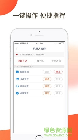 通过V智会APP可随时查看参会人员信息、发送会场广播通知、控制机器人主持表演,切换会议互动环节,能随时随地进行会议管理,及时应对突发情况,有效把控会议节奏。