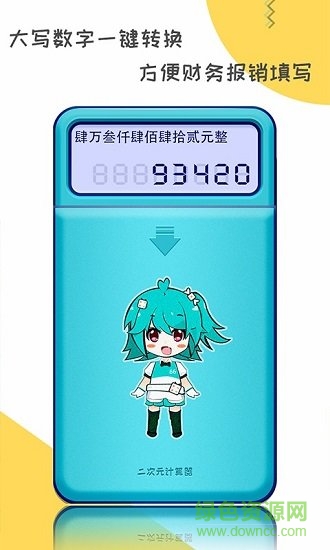 二次元计算器是一款体型轻小,功能强大的科学计算器。浓烈的二次元风格让二次元爱好者欲罢不能,精美的ui设计和甜美的日文报数是二次元计算器的杀手锏。