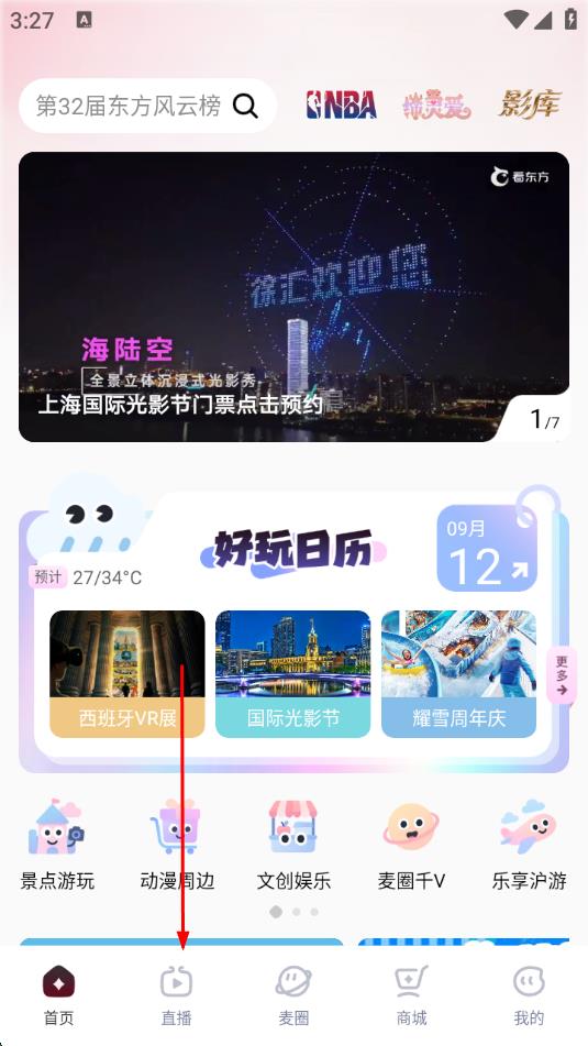 1、打开看东方应用,点击底部导航栏中的直播选项。