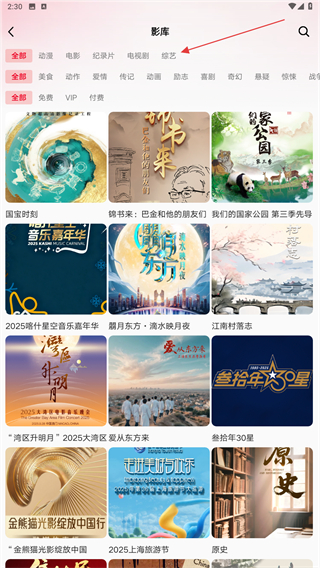 2、进入影库的页面内,在分类中点击综艺的类型。
