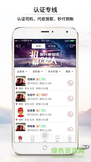 聚民惠企业版app是一款专注于商家物流的手机软件。用户在上面可以寻找到很多自己需要的物流信息,并且这些物流的司机等都经过严格的筛选,有质量和信誉的保证。感兴趣的朋友快来绿色资源网下载体验吧!