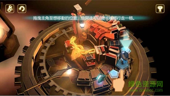 1.通过回合制的移动来探索这个世界,转动机关,谨慎的思考解谜方法;
