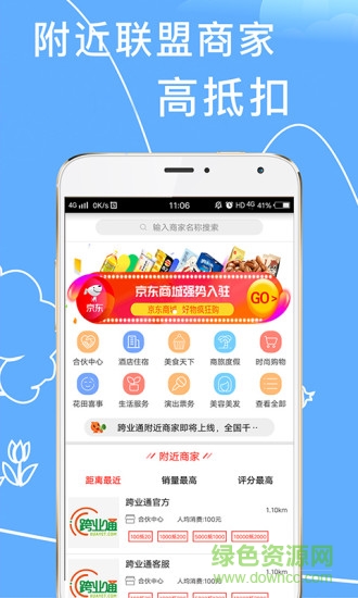 跨业通app是专为商家设计的一个赚钱平台,优惠充值卡在线下单价格便宜,跨业淘宝商城购物更实惠,全国商圈动态及时更新,给用户最具价值性的营销信息,欢迎来绿色资源网下载!