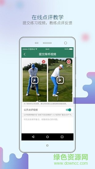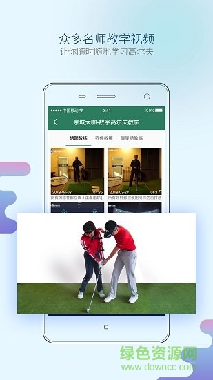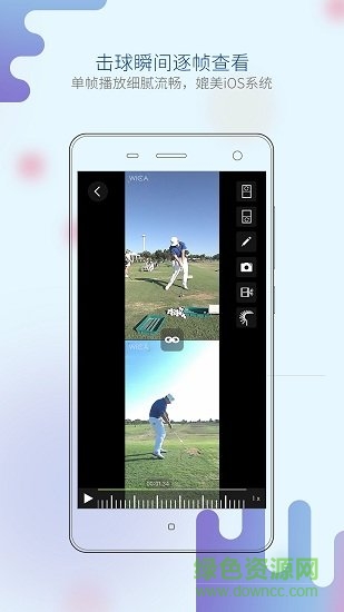 此款APP有强大的视频录制,视频慢放,视频解析,回放等功能,学员可通过以上功能查看自己的挥杆轨迹来纠正练习姿势,力度,脊柱逆转等。