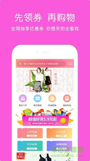 省钱公园app是一款汇聚海量优惠券的手机购物软件,商品种类齐全,服装鞋子、美妆护肤、母婴用品、时尚单品全部应有尽有,低价好货任你挑,有需要者欢迎在绿色资源网下载!