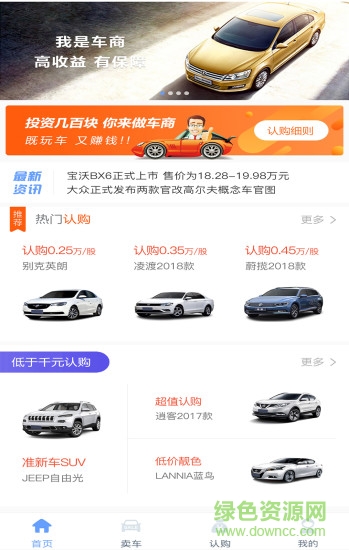 我是车商APP向用户展示平台的二手车辆信息,用户可以根据认购价认购其中的二手车,等待车辆出售后可以获取一定的收益。