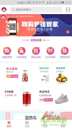 论购app是一款专注于手机购物的软件。用户在上面不但可以优惠的买到商品,还可以和别人一起分享赚钱,并且全平台的消费者权益得到保障。感兴趣的朋友快来绿色资源网下载体验吧!