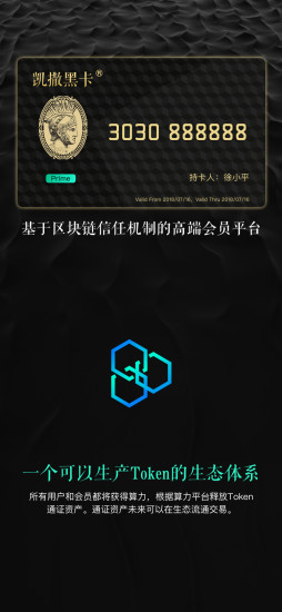 凯撒黑卡是基于区块链技术和理念的去中心化自治生态产品,在凯撒黑卡的生态中,为会员提供产品及服务将不再由中心化组织提供,而是依托所有用户的群策群力,并引入区块链通证经济实施用户激励,并不断在凯撒黑卡的基础上开放dapp开放接口,引入个人及社会组织合作,为生态赋能,实现生态权益之间的价值计算和权益兑换。