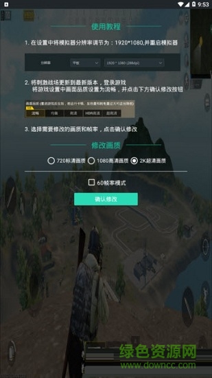 手游吃鸡超高清如何开启,来绿色资源网下载吃鸡高清工具,让你的游戏画质变的更加的高清!这是一款专为吃鸡游戏打造的游戏画质修改软件,让你的游戏界面开起来更加的舒适!