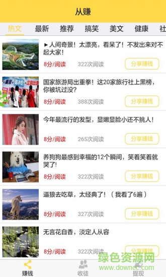 从赚app是一款阅读赚钱软件,覆盖各行各业的资讯信息,操作简单易上手,非常适合闲暇时间丰裕的朋友兼职做任务,有需要者欢迎在绿色资源网下载!