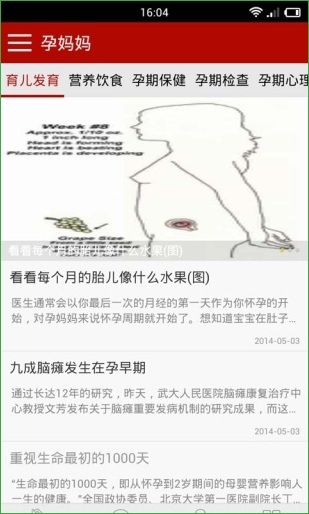 1、胎儿发育,营养饮食,孕期保健,孕期检查,孕期心理,时尚孕妇,常见疾病,孕期安全,胎教,多胞胎。