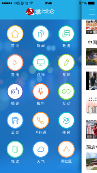 新版的“掌上北仑”客户端一打开就是惊喜,清晰简洁的界面,却有着更多彩的内容。多方合作,功能更加实用强大,首页、资讯、政务、直播、点播、专题、拍客、报料、互动、公交、号码通、便民、悦读、天气、微社区15个板块等你来尝鲜。
