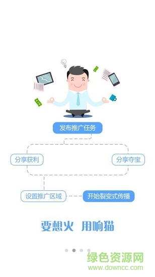 响猫app是一款互联网信息推广平台应用,响猫app集分享夺宝,广告制作,商圈推广等多种服务功能,为商家提供最有效的推广,大大降低广告成本,提高信息曝光,有需要的用户快来绿色资源网下载试试吧!