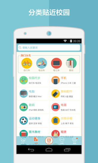 与其他二手交易网站不同的是,校园二手街的分类专为学生设计,自行车、教材等都是学生的必需品。