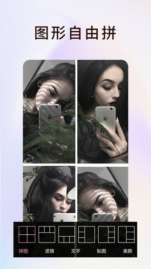 让你可以对图片进行P图美图等滤镜处理,使你很方便地进行图片拼接,并且免费保存和分享制作的照片拼图,赶紧下载这款应用,制作有趣的照片拼图,并分享吧~