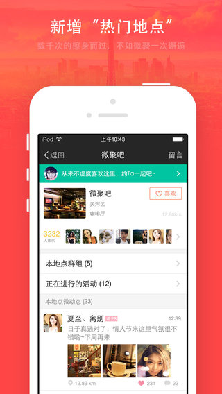 3. 当你出差旅行时,可以通过微聚找到异地同样寂寞的TA