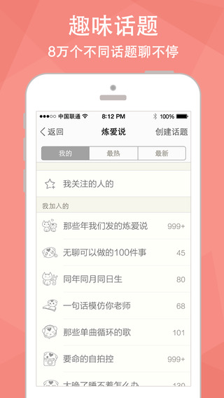 炼爱iOS版是一款新颖的iOS平台社交应用。国内新一代最好玩的移动社交产品,在炼爱iOS版这里可以遇到很多五湖四海的朋友,你可以通过拜师认识更多高富帅和白富美;你可以通过广场诉说你心底的秘密,结交志同道合的朋友;更有国内独创的在线婚姻,抢先体验结婚的浪漫之旅。你还可以免费发送信息,语音,图片和地理位置,更有炼爱说让你和更多的炼爱达人互动。大家一起玩一起搞笑,虽然偶尔会有些矛盾,但总体还是不错的,如果再有同城交友就好了,本地的朋友比较散,要是有个功能按城市按省交友就方便多了。来炼爱,只为那怦然心动的感觉。